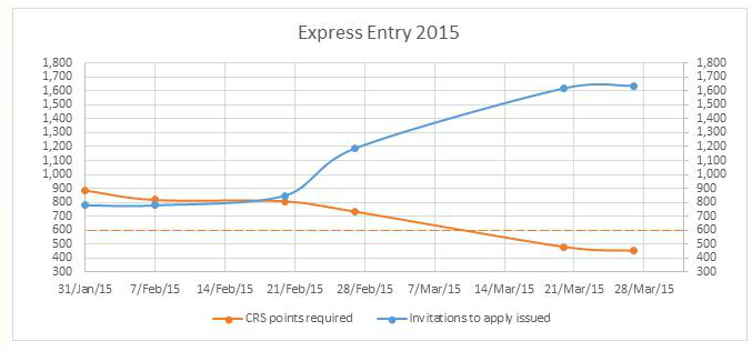In terms of how often Express Entry draws are made, Citizenship and Immigration Canada (CIC) appears to favour frequent draws that select a limited number of candidates. Before launch day, CIC officials said that an estimated 15 to 25 draws would be made in 2015. With six draws having taken place between January 31 and March 27, CIC is on track to get to the upper end of that estimated range if the regularity of draws remains consistent.