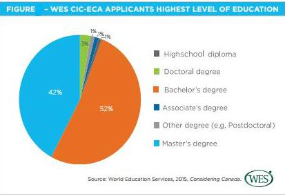 By comparison, CIC’s 2012 data on Canadian immigration applicants under skilled categories show that 34 percent had a bachelor’s degree and 18 percent had a master’s , revealing that applicants for an ECA have more degree-level qualifications than past skilled worker principal applicants.