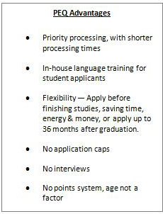 Students with the right combination of education and language skills can apply for the PEQ. To be considered eligible, students must have: