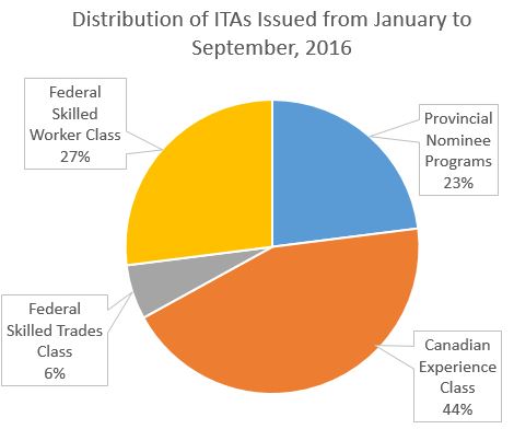 Over the first nine months of 2016, however, the percentage of candidates who were invited to apply having obtained a provincial nomination certificate increased to 23 percent of the total, showing the increasing importance of these programs.