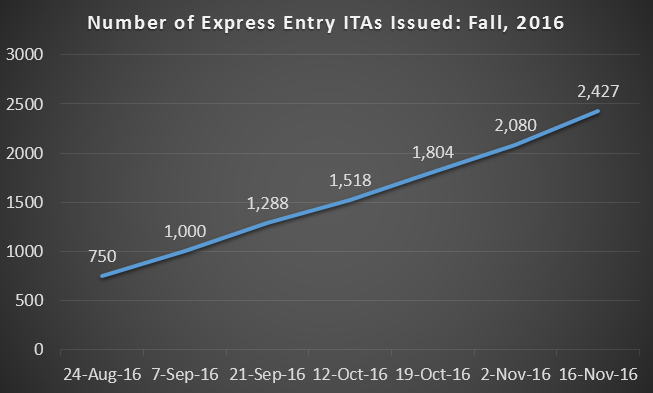 After a month in which Express Entry draws continued to grow larger in size, the big news in October came on the final day when IRCC published its 2017 Immigration Levels Plan. This plan called for significant increases in economic immigration to Canada, particularly through the programs managed under Express Entry, as well as the Provincial Nominee Programs (and many PNPs continued to welcome new applications through October). The number of people to be invited to apply for Canadian permanent residence through Express Entry in 2017 is expected to go up considerably.