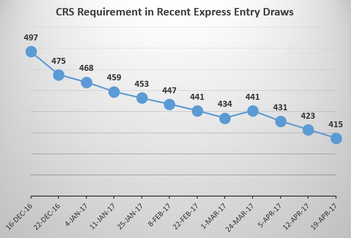 Express Entry CRS Requirement Continues to Tumble: 415 in April 19 Draw