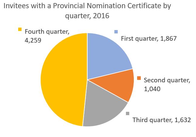 Over the course of 2016, a total of 8,798 individual candidates in the pool were invited to apply having obtained a provincial nomination.