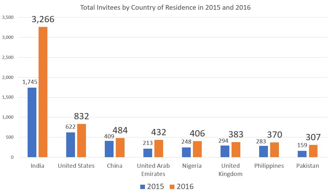 It should be noted that the above table represents only 21 percent of all ITAs issued in 2016, and that thousands of ITAs were also issued to residents of other countries around the world.