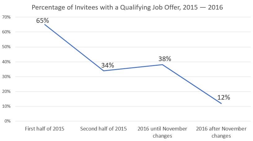 Fewer candidates with job offers receiving ITAs