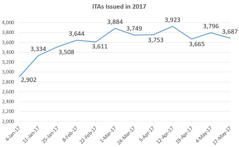 The size of the draw, and the corresponding CRS cut-off threshold, are broadly in line with the latest trends in Express Entry. Since the closing months of last year and into 2017, draw sizes have increased manifold, and the CRS threshold has decreased from 468 (January 4) to the most recent level of 415. The last occasion in which the threshold reached 415 was last month, on April 19. In the intervening period, another draw with a threshold of 423 took place on May 4.