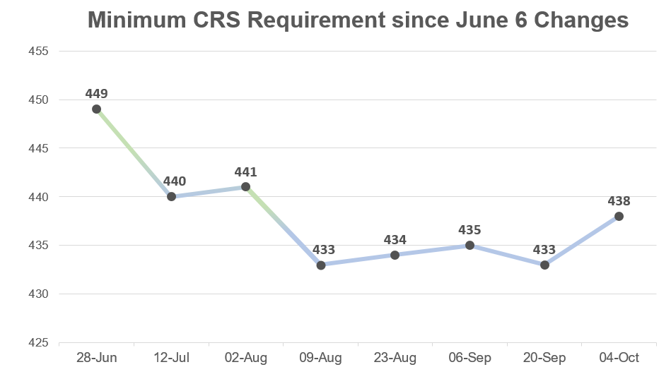 Immigration, Refugees and Citizenship Canada (IRCC) has invited 2,801 more candidates to apply for Canadian permanent residence, in an Express Entry draw that took place on October 4. Candidates in the pool with 438 or more Comprehensive Ranking System (CRS) points were issued an Invitation to Apply (ITA) on this occasion.