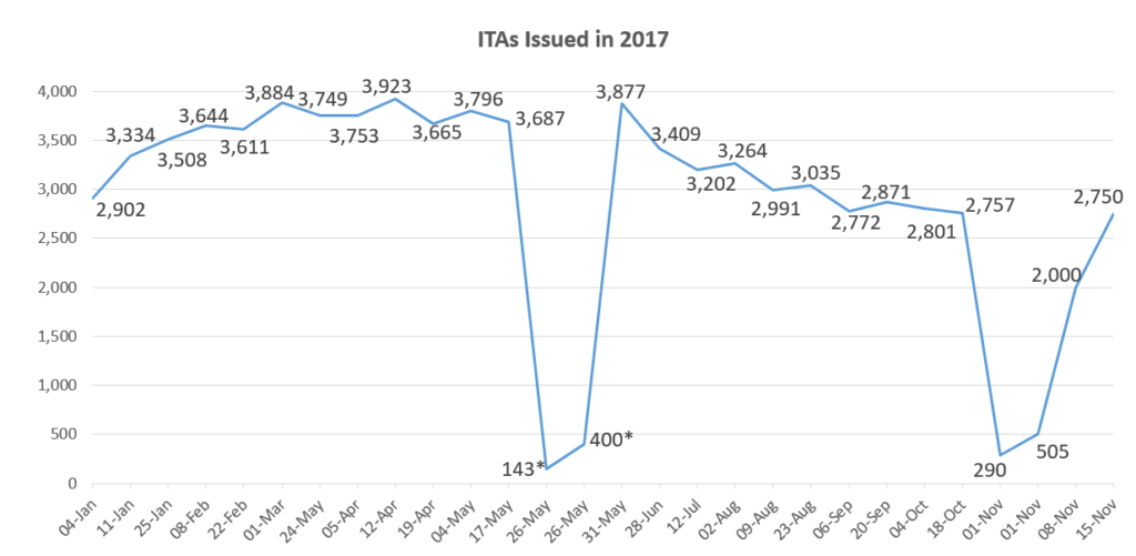 This latest draw was the 78th draw to take place since the Express Entry system was introduced on Jan. 1, 2015, and the 28th since the start of 2017. So far this year, 80,523 ITAs have been issued.
