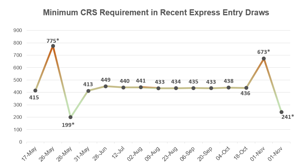 *Note: Draws of May 26 and November 1 invited provincial nominees and candidates in the Federal Skilled Trades Class only.