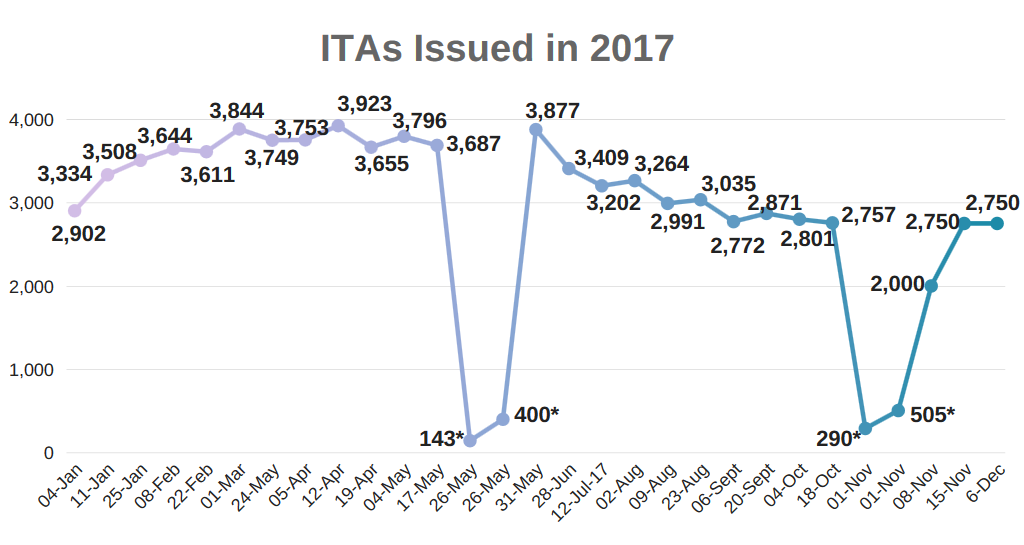 Since the announcement, five draws have seen a total of 8,295 ITAs issued.