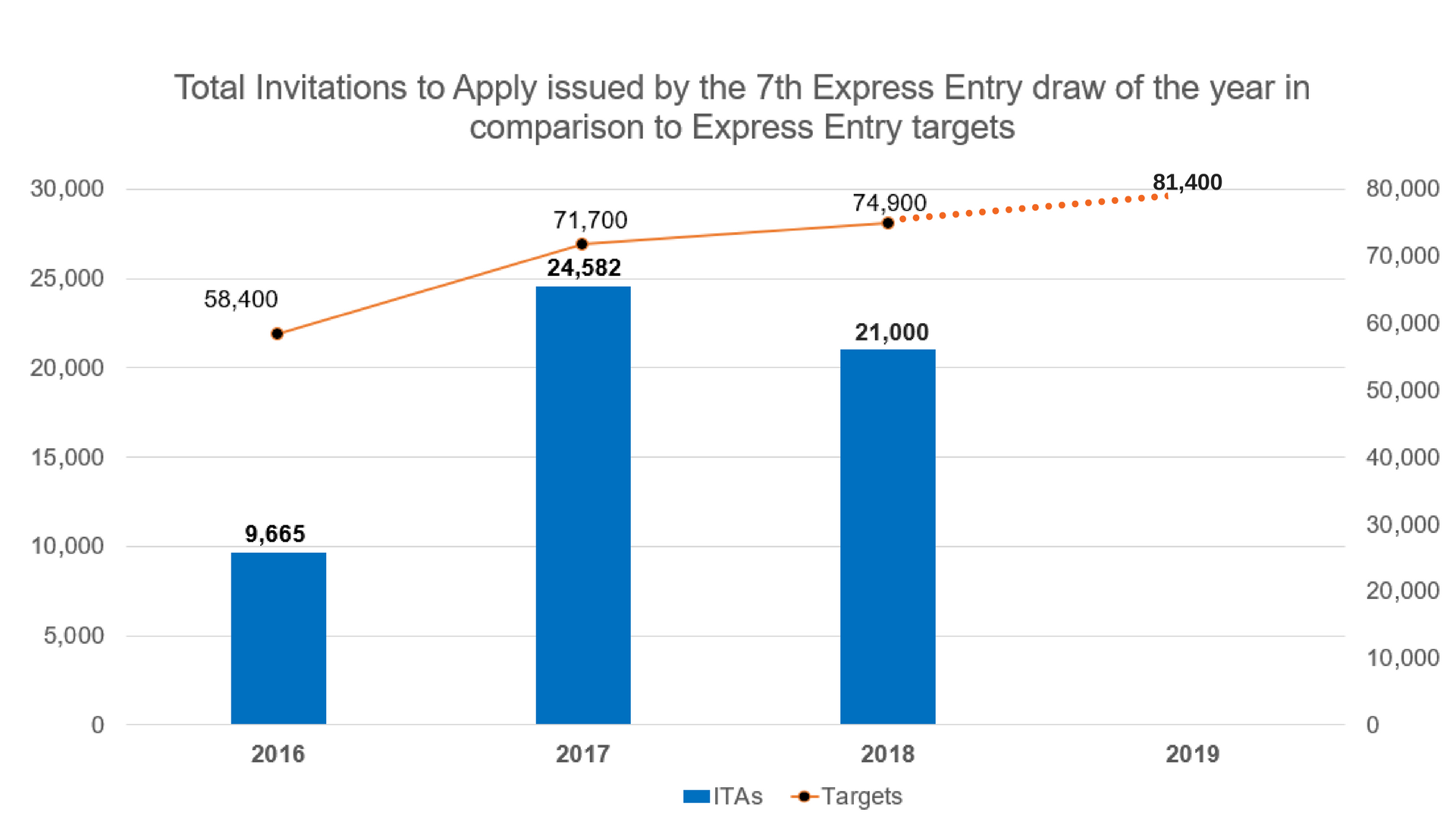 According to targets set in Canada's multi-year immigration levels plan for 2018-2020, the federal government set a target of 74,900 admissions for the three economic immigration classes administered through the Express Entry system.