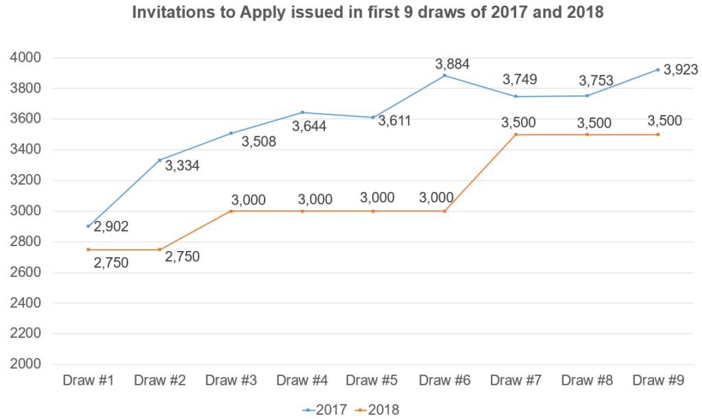 The 3,500 invitations brings the number of ITAs issued so far in 2018 to 28,000. This is third draw of 2018 to issue 3,500 ITAs following a series of six draws earlier in the year that saw between 2,750 and later 3,000 ITAs issued.