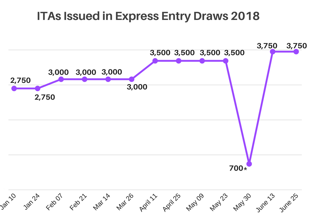 June brought to a close a half year that saw a total of 39,700 ITAs issued over 13 draws conducted through the Express Entry system.