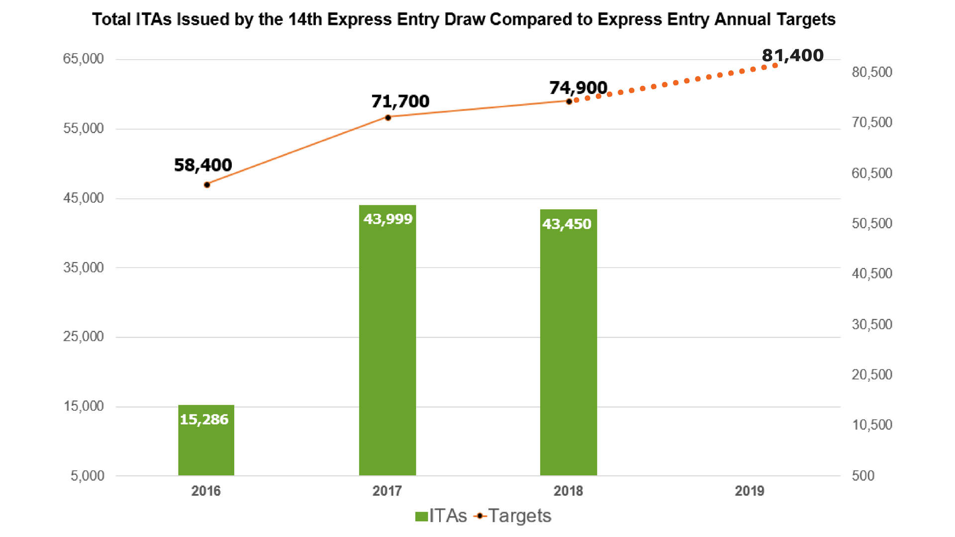 With today's results, IRCC has now issued a total of 43,450 ITAs in 2018 over 14 draws.