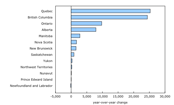 Job vacancies rose in eight Canadian provinces and Canada's three territories, with Quebec and British Columbia posting the greatest increases.