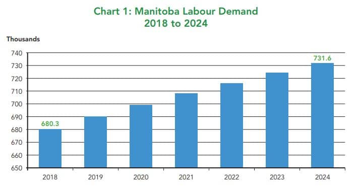 An almost equal number of new workers — 168,400 — is expected to join Manitoba's labour force over this seven-year stretch.