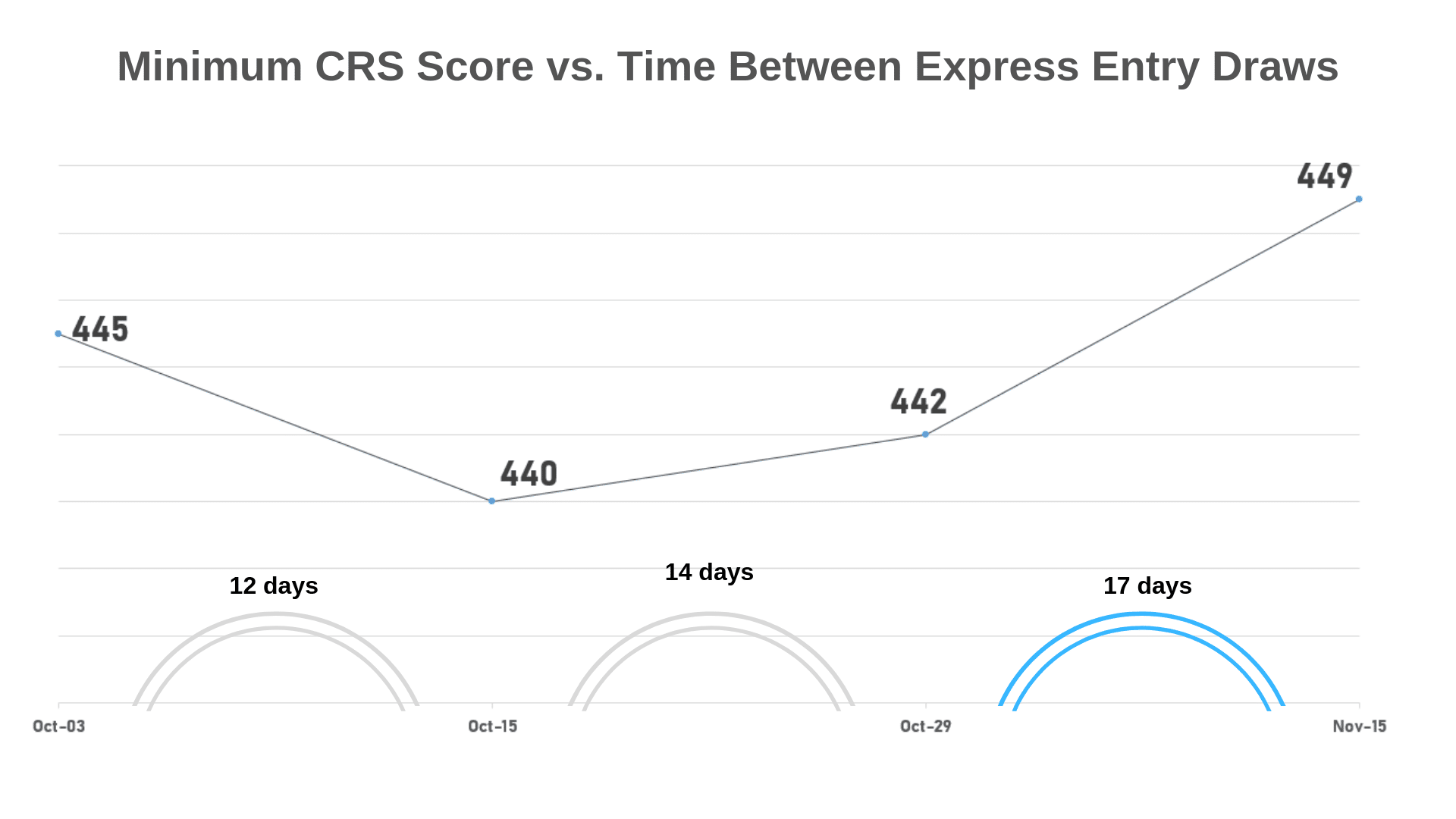 When more time is allowed to elapse between draws, more candidates enter the Express Entry pool and that can have the effect of raising the minimum CRS score. In this case, 17 days were allowed to elapse between draws, which is three days longer than the usual two-week period.