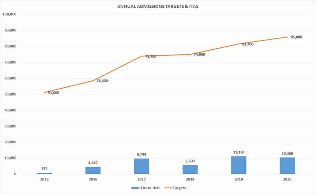 The target for new permanent resident admissions through the three federal high-skilled programs is slated to rise to 85,800 ITAs this year and 88,800 in 2021.