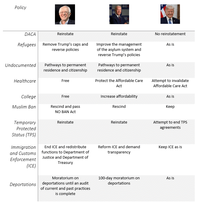 Both Democratic candidates have built their immigration platforms on criticizing policies implemented by the Trump administration over the past four years, such as ending the Muslim ban, protecting immigrants who came to the U.S. as children and who became known as “Dreamers”, and implementing a moratorium on deportation.