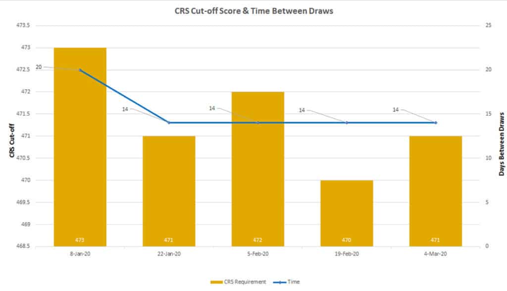 The cut-off score of 471 is an increase of one point over the previous draw on February 19, which had a minimum score of 470.