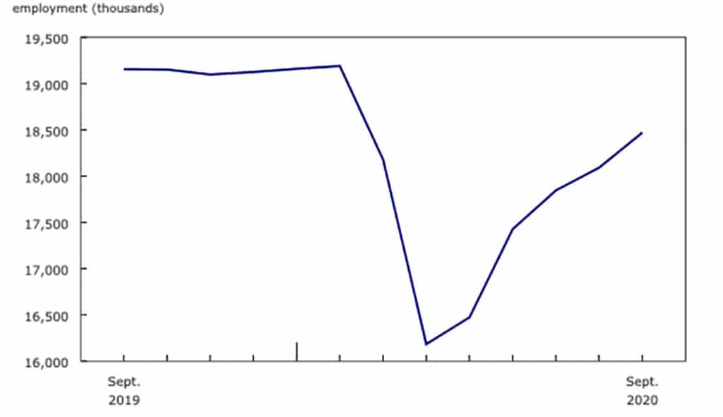 Employment rose 2.1 per cent in September, a much faster rate than August when the labour force saw a 1.4 per cent jump, according to the latest Statistics Canada Labour Force Survey. Data in this report were collected from the labour market during the week of September 13 to 19. The employment rate in Canada is now within 3.7 per cent, or 720,000 jobs, of its pre-coronavirus levels. The accommodation and food services, and retail trade industries remain the furthest behind other sectors from full recovery.