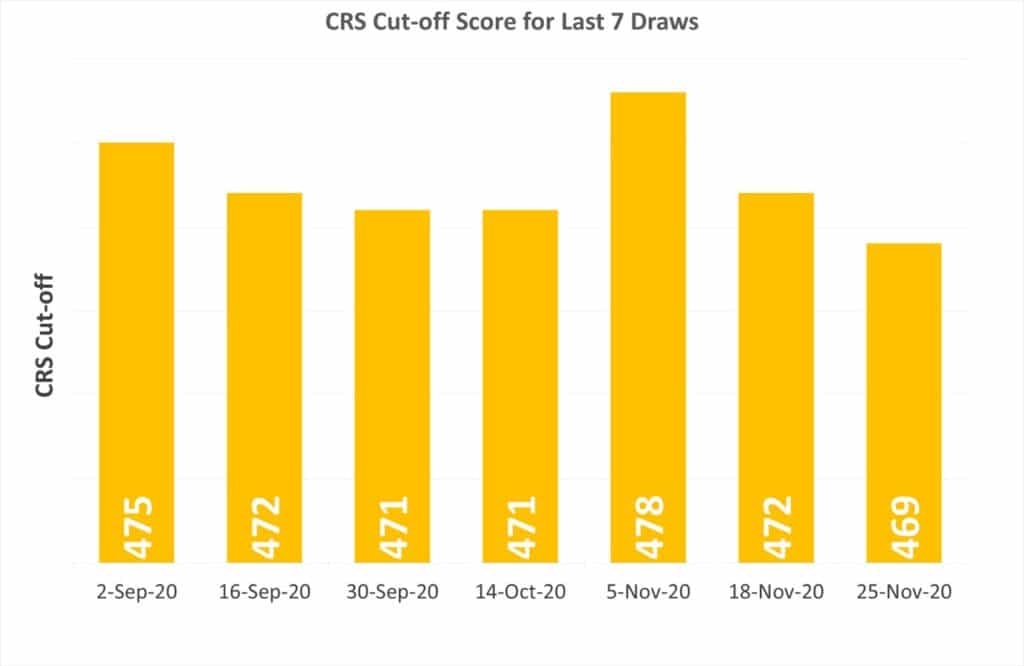Candidates needed a Comprehensive Ranking System (CRS) score of at least 469 in order to be invited in the November 25 invitation round. A total of 5,000 invitations were sent to Express Entry candidates, which ties this draw for the largest number of Invitations to Apply (ITAs) issued in a single draw.
