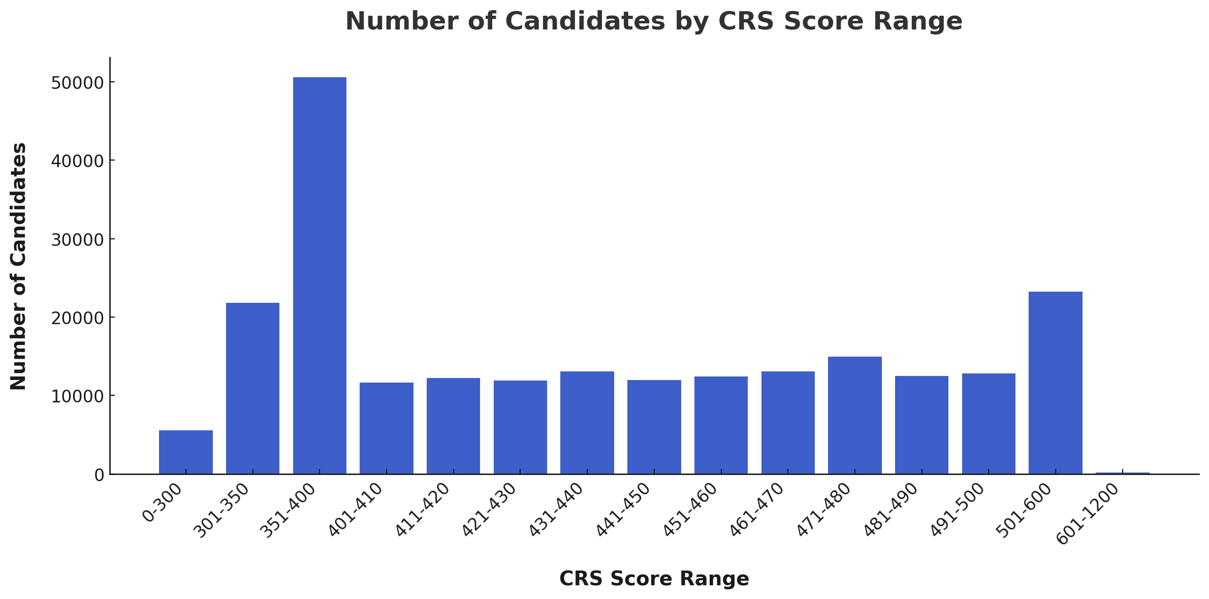 Candidates in the Express Entry pool can use this information to get a better idea of their competitiveness within the Express Entry system. While there are a number of factors that can influence Express Entry draws, a key determinator of the CRS cut-off for an Express Entry selection is the composition of the candidate pool at the time of the draw (with higher scores always more likely to receive an ITA).