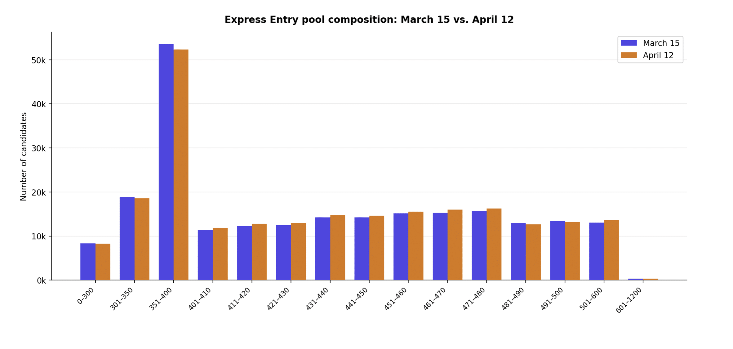 | CRS score range | March 15 | April 12 | Difference |